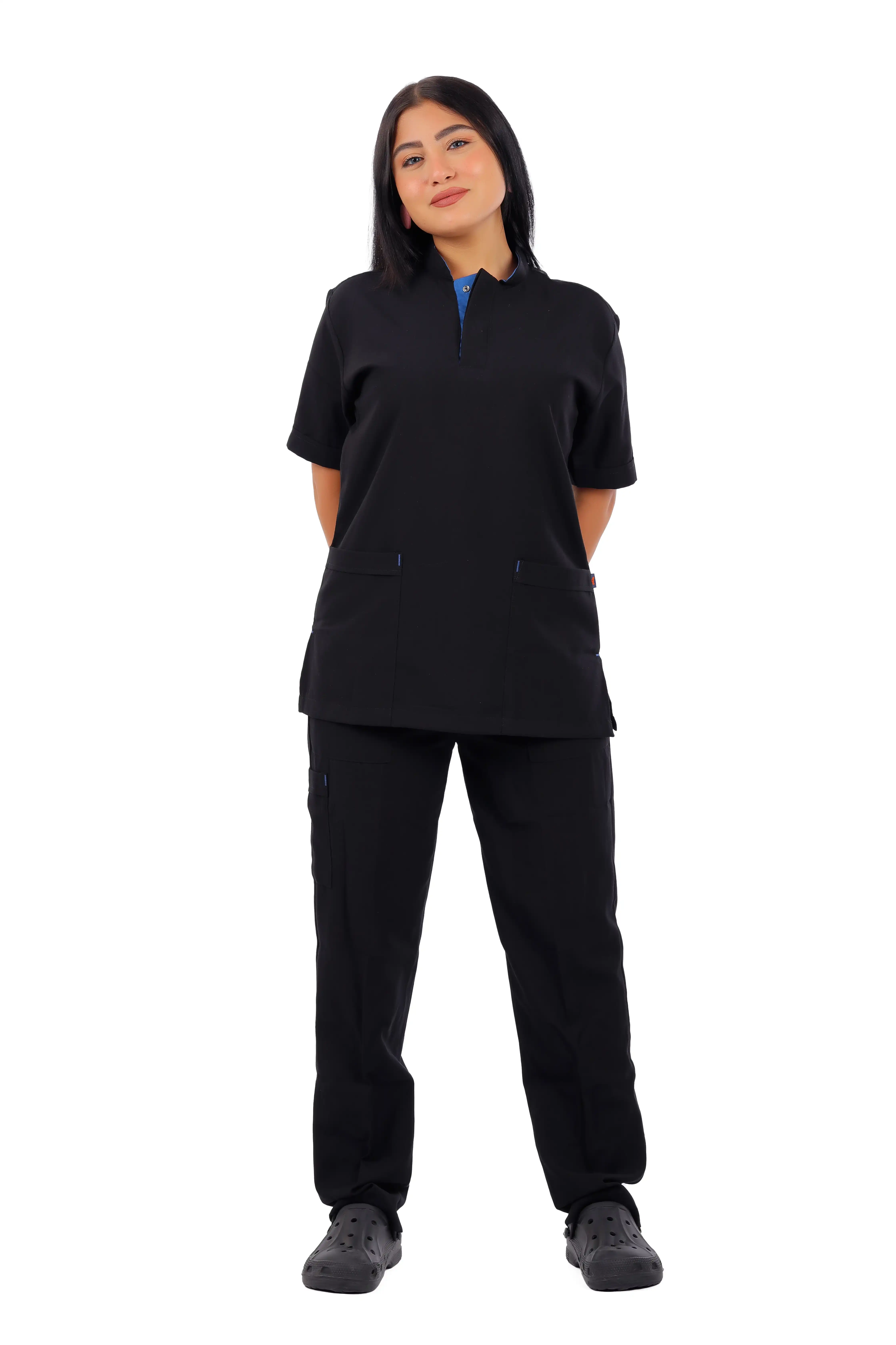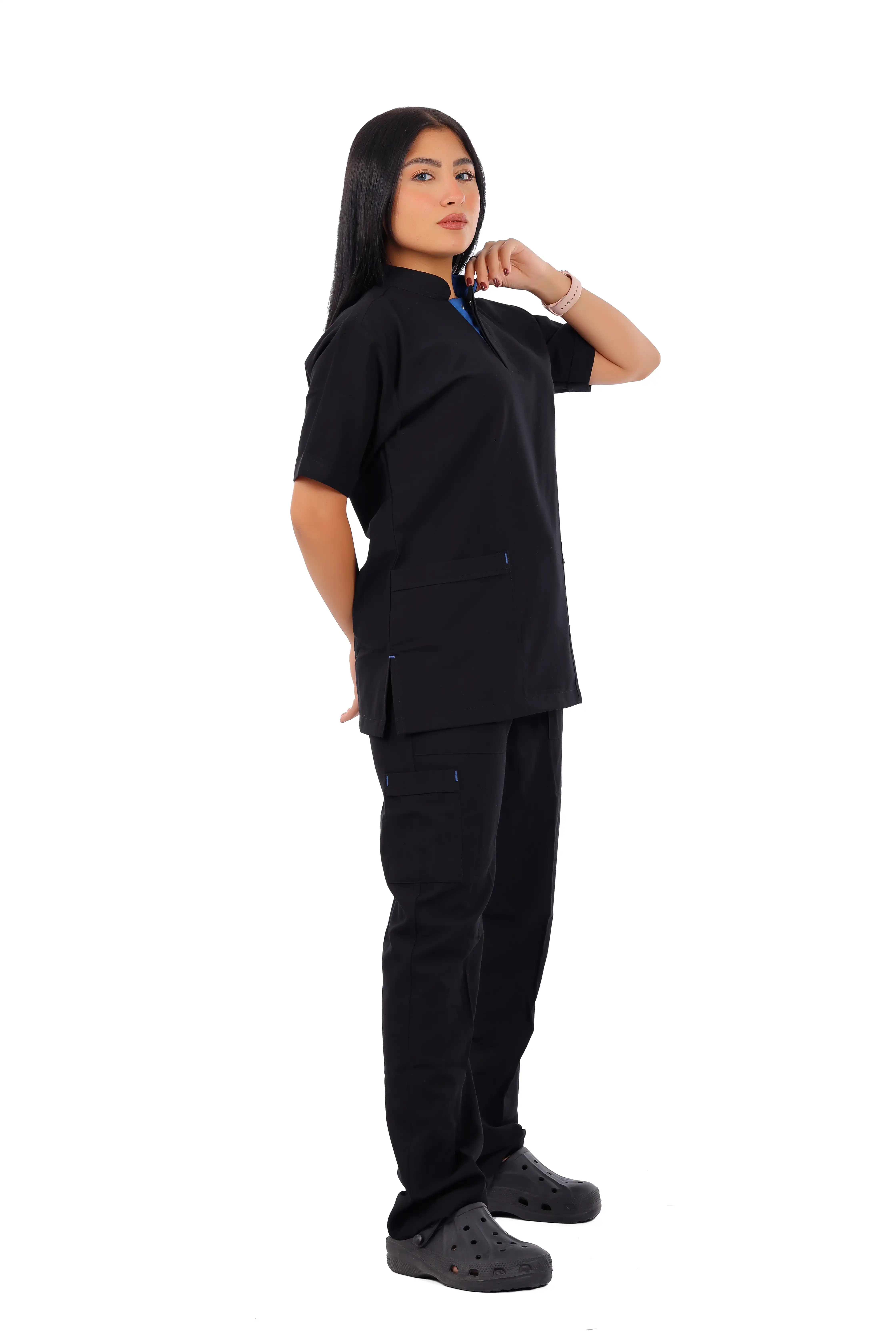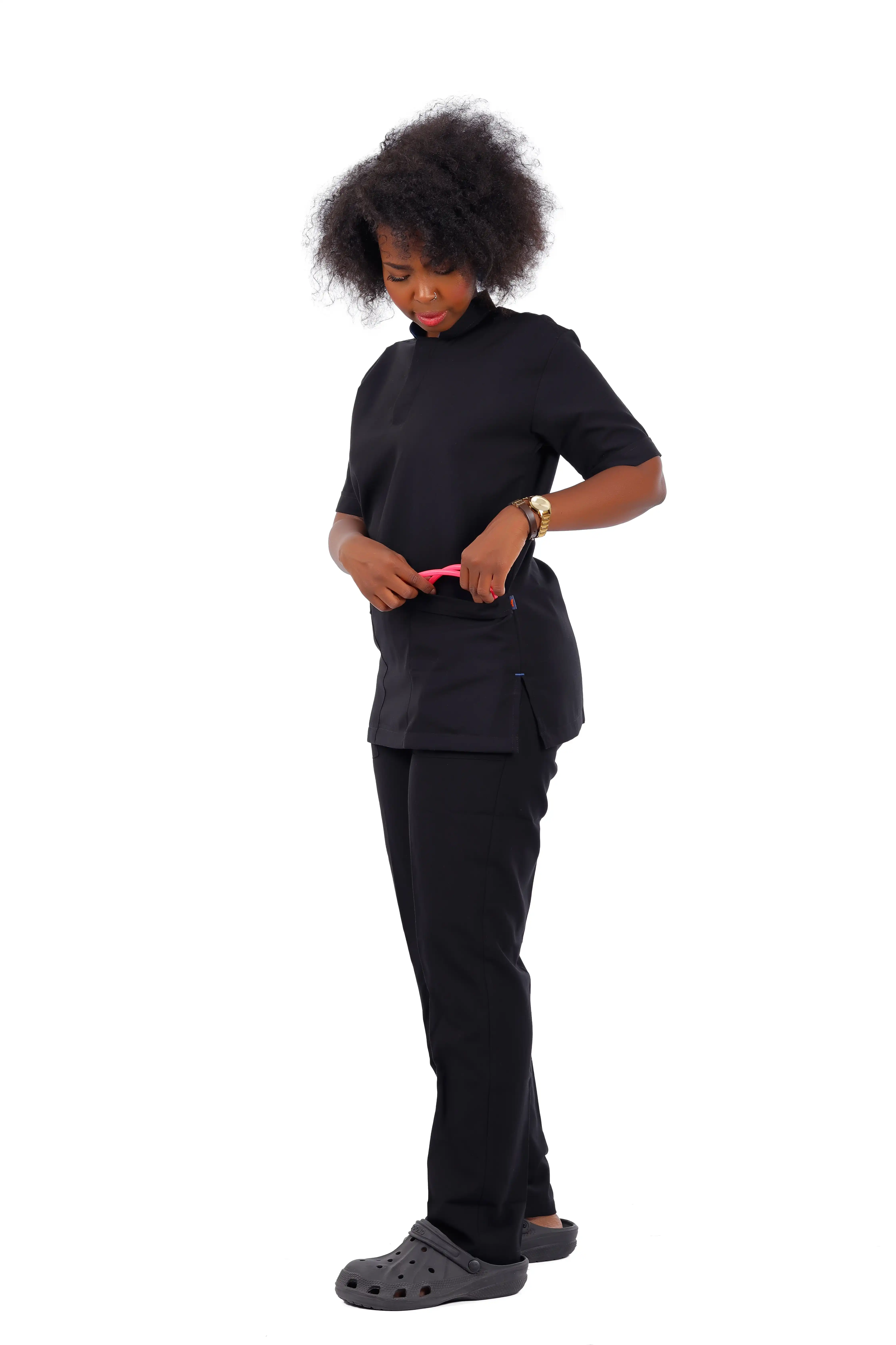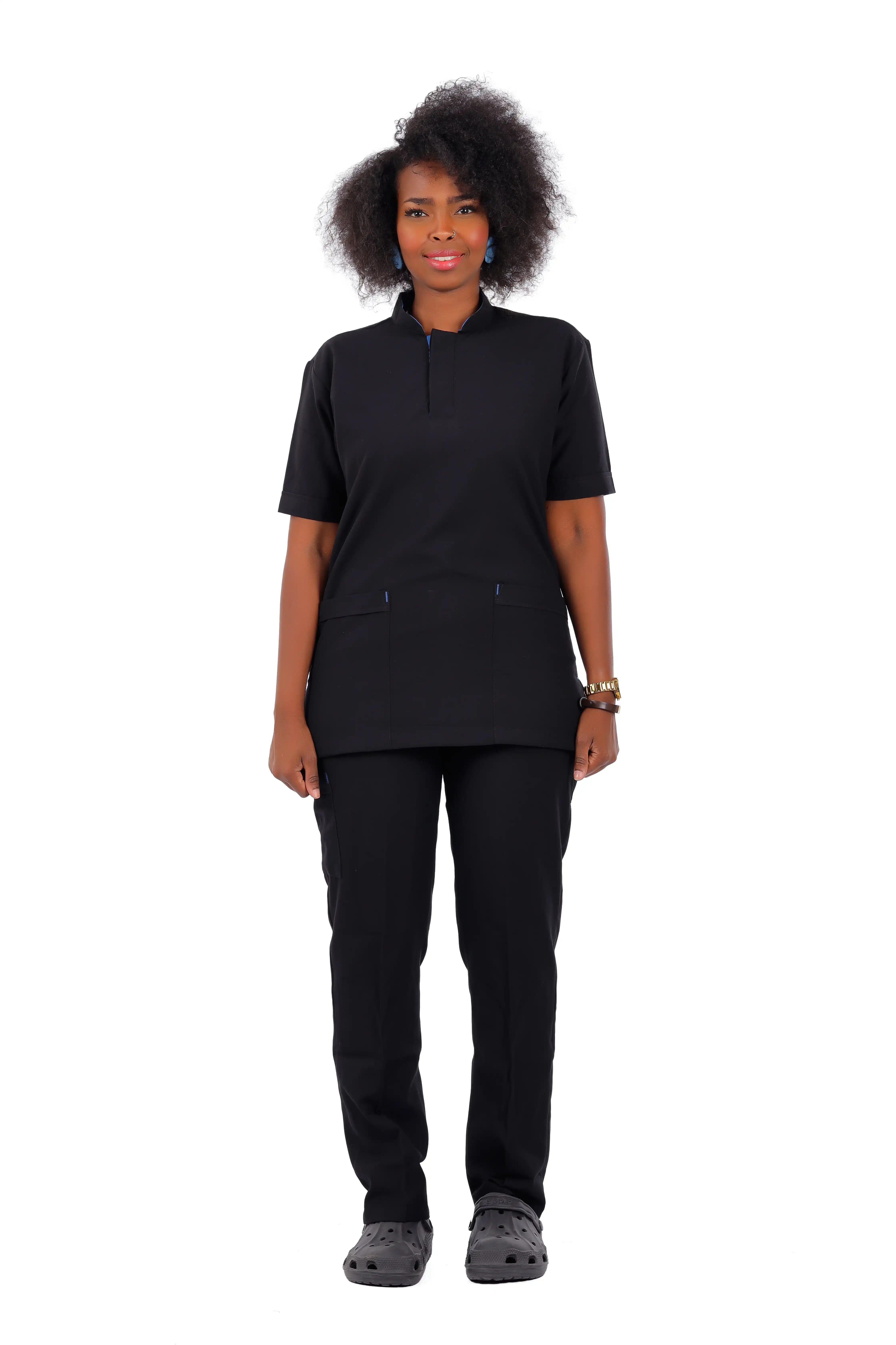 Elevate your medical crew’s style with black stylish buttons, ultimate design & comfortable touch of femininity.