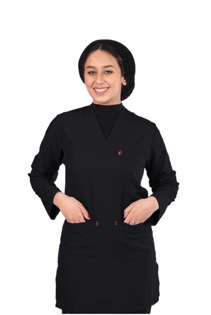 Black Tonic Top, Female, V Shape, Long Sleeve, Polyester, XS