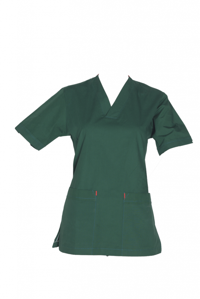 Dark Green Top, Female, V Shape, Short Sleeve, Cotton, L