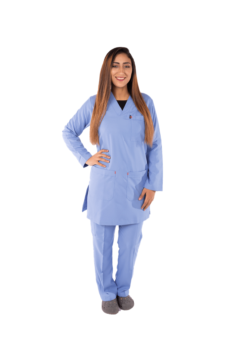 Light Blue Tonic , Female, V Shape, Long Sleeve, Polyester, S
