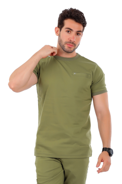 Olive Sportive Medical Scrub Top- Sweat Pants