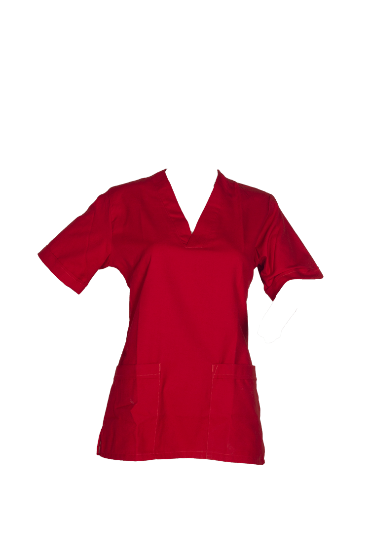 Red Top, Female, V Shape, Short Sleeve, Linen, S