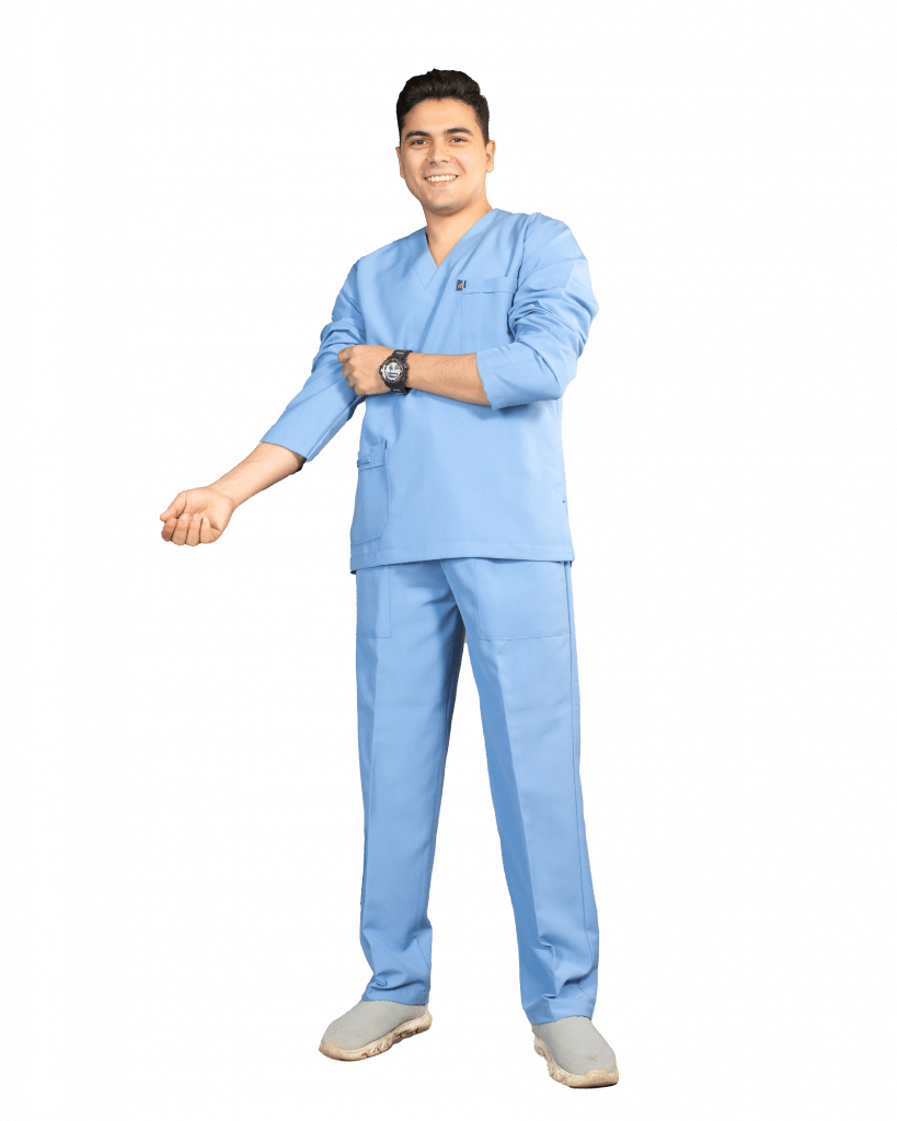Royal Blue Scrub, Male, V Shape, Long Sleeve