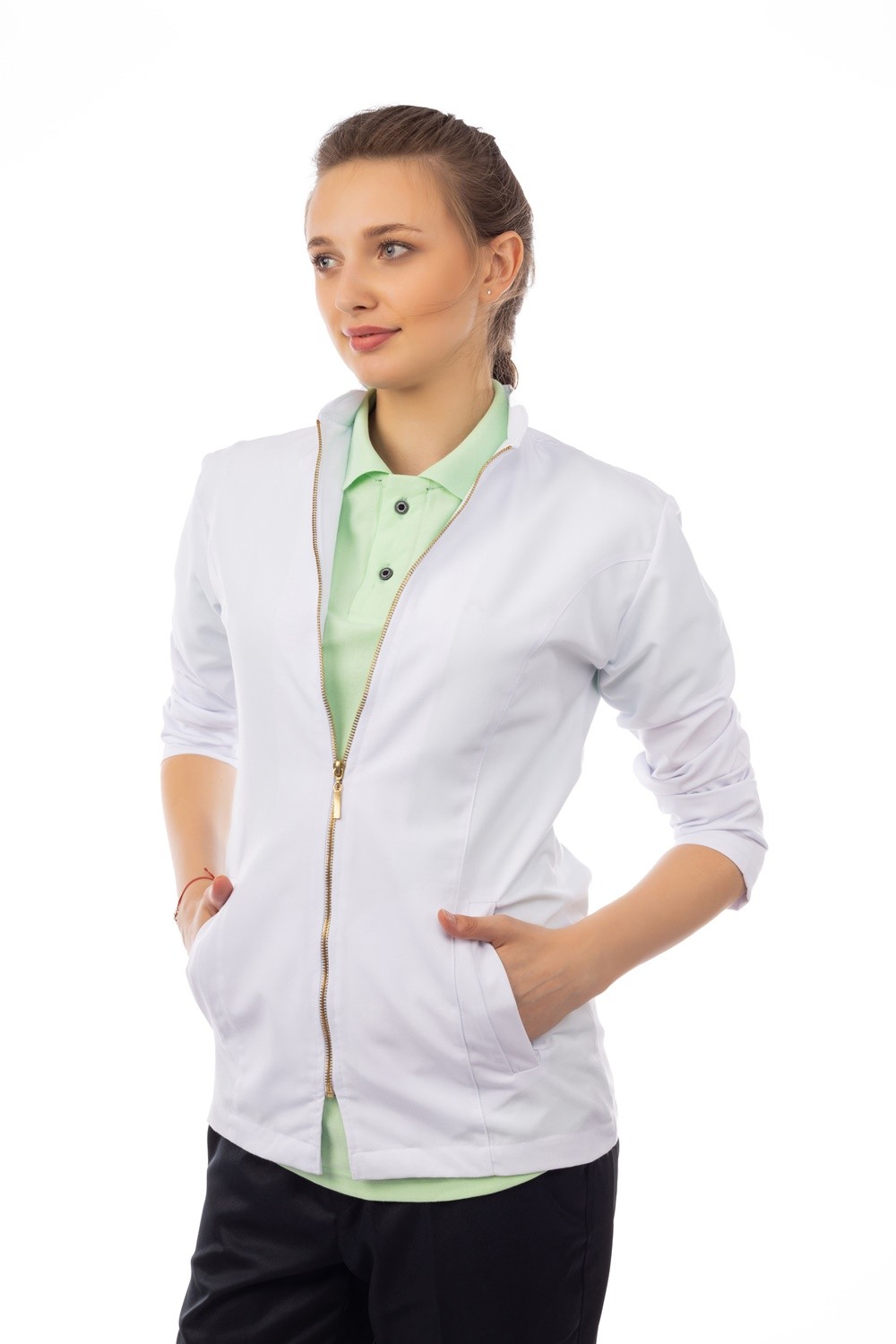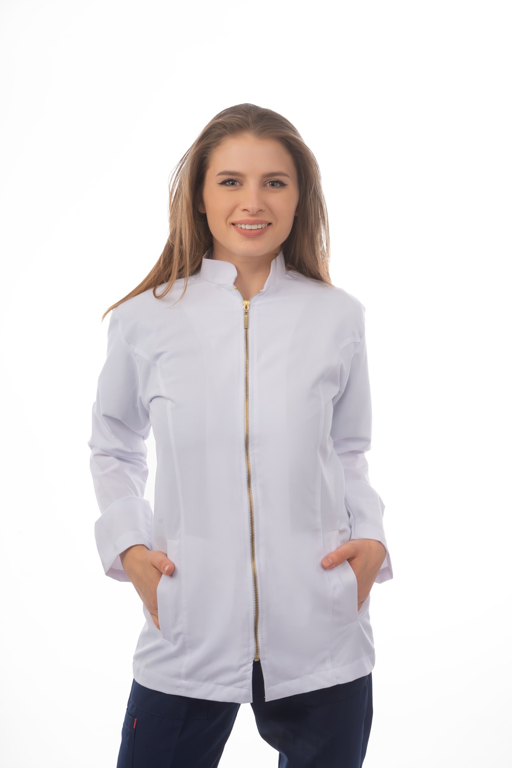 جاكيت إيبكس النسائي الانيق بطول 30 بوصة، يأتي بتصميم فريد و سحاب معدني ذهبي، يمنحكي لمسة فاخرة.