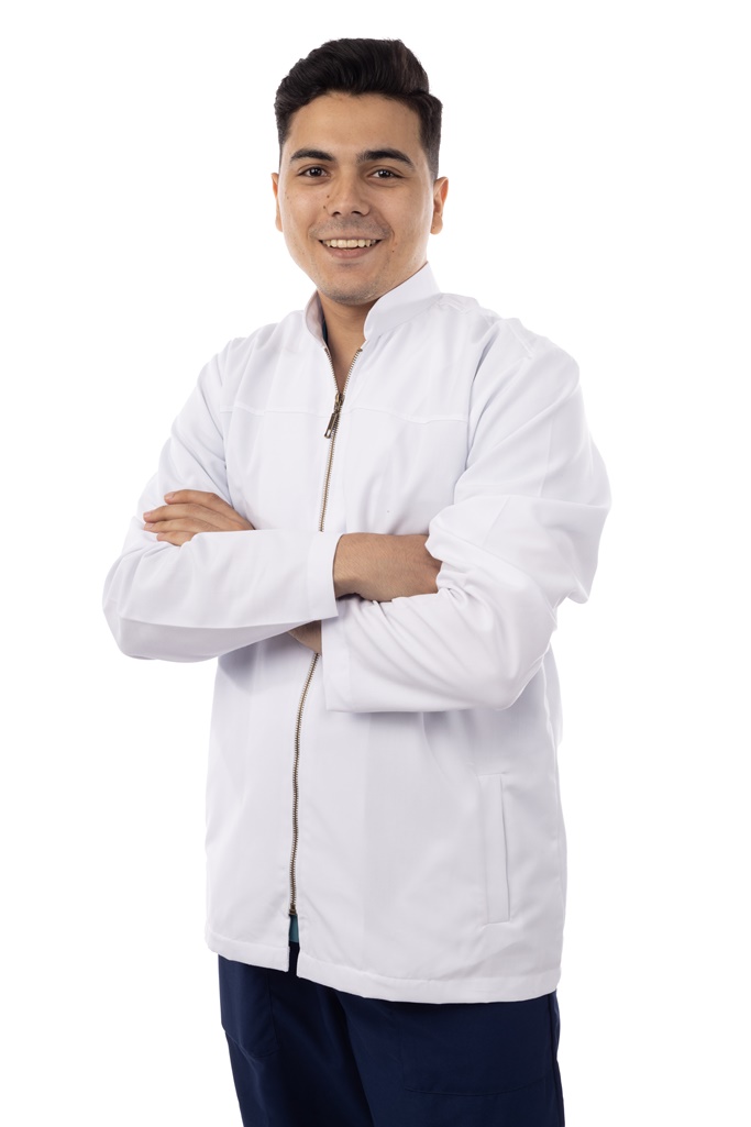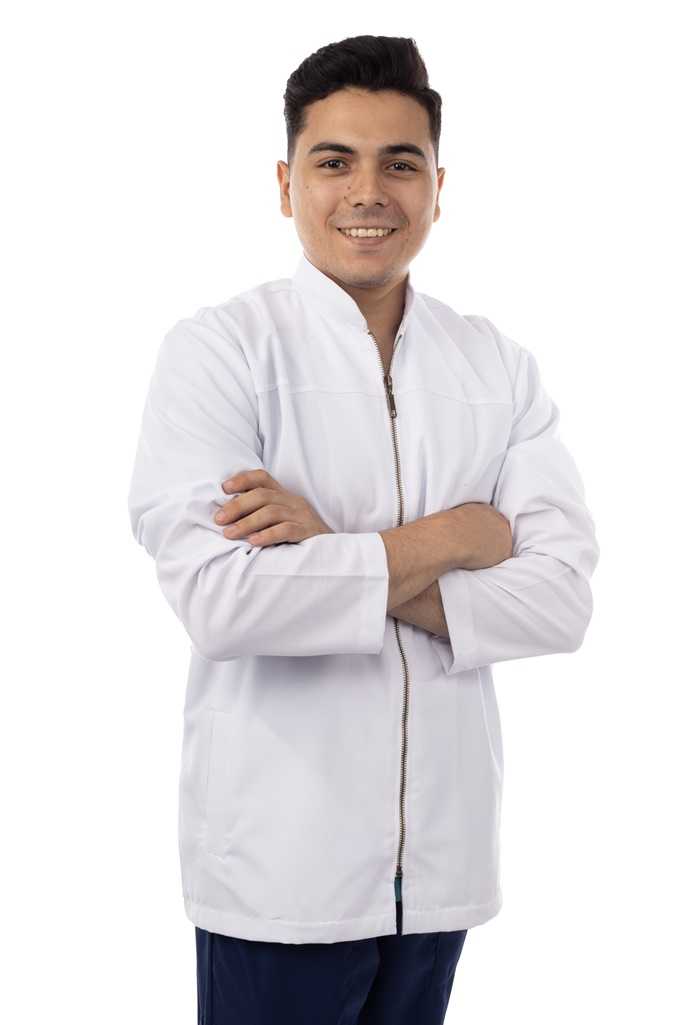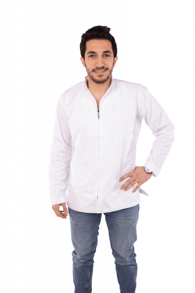 لاب كوت كلاسيك كباسين طويل بطول 35 بوصة، يجمع بين المظهر الأنيق والراحة وسهولة الحركة.