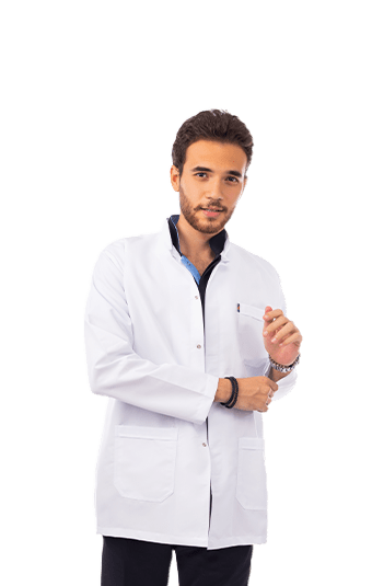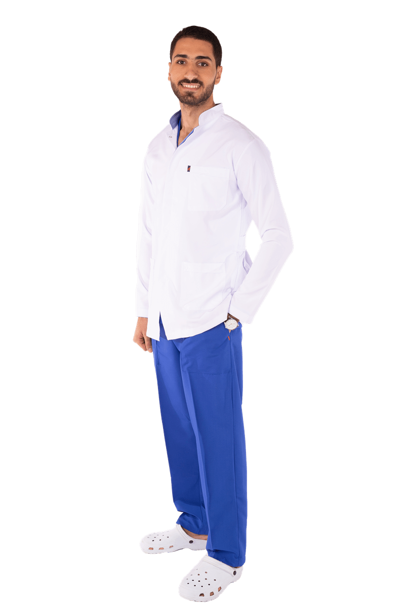 لاب كوت كلاسيك كباسين طويل بطول 35 بوصة، يجمع بين المظهر الأنيق والراحة وسهولة الحركة.